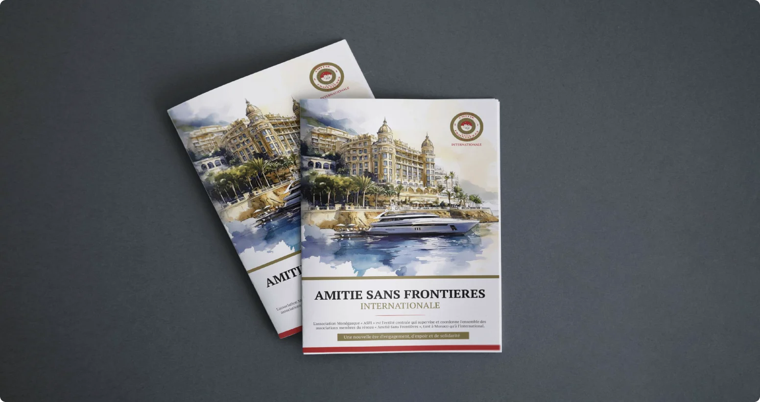 Amitie Sans Frontieres Internationale brochure, the goal was to design a refined and informative publication that clearly communicates the organization’s mission, impact, and international presence. The brochure needed to balance professionalism with warmth, presenting important information about the organization while maintaining a visually engaging layout that reflects trust, credibility, and global collaboration.