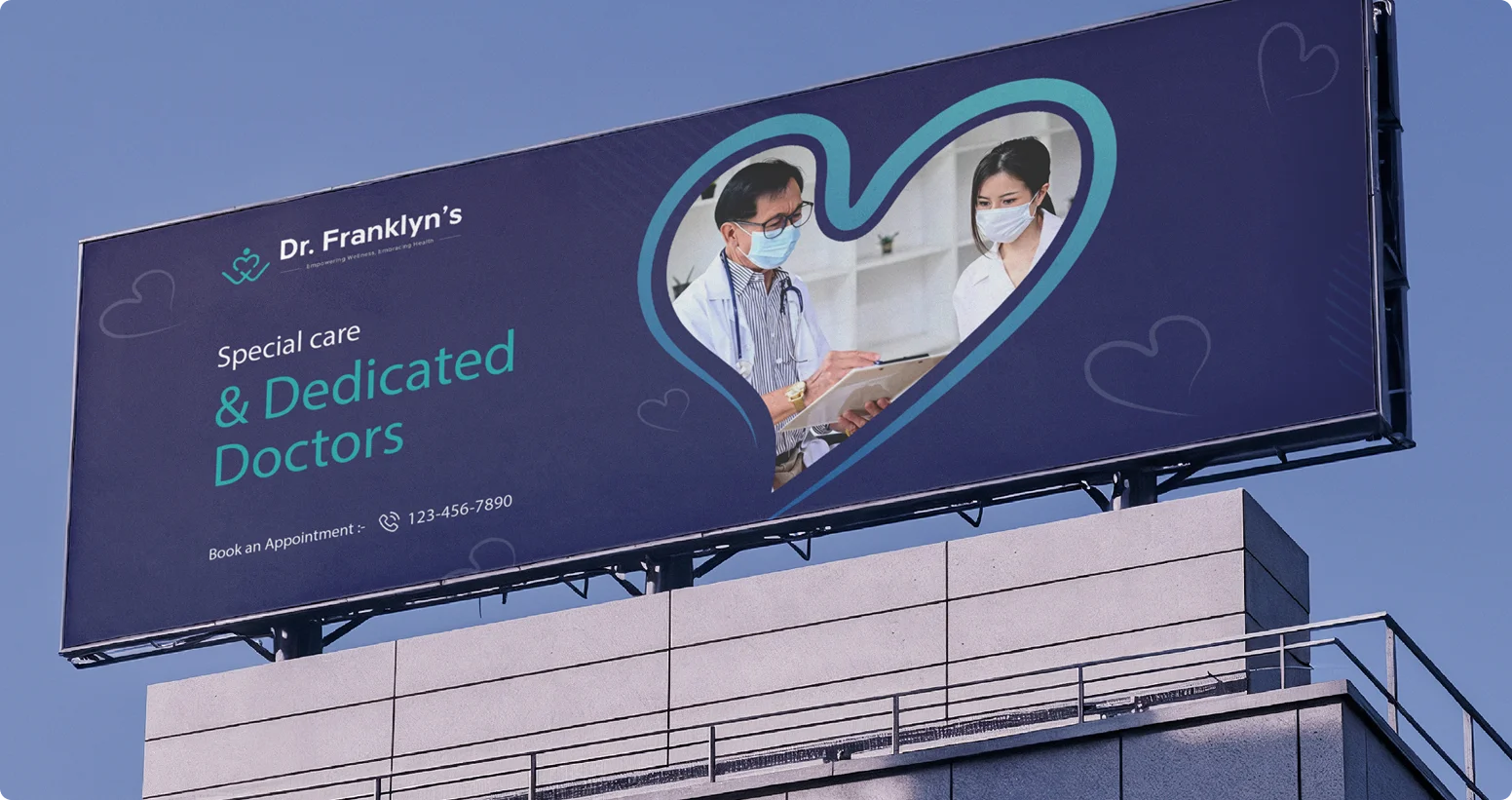 Overall, the brand identity for Dr. Franklyn’s was crafted to build credibility and emotional connection with patients. The logo not only reflects the values of healthcare and compassion but also establishes a modern and professional visual presence for the brand.