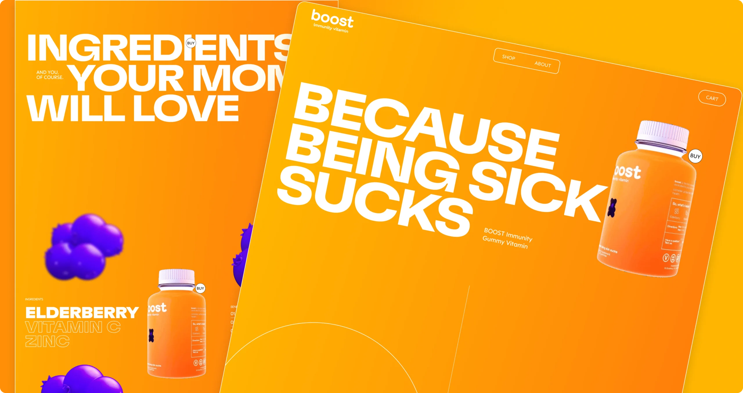 The Boost Immunity Vitamin project was focused on creating a bold, energetic, and visually striking digital experience that immediately captures attention. UI/UX project, the goal was to design a brand presence that feels modern, confident, and different from traditional supplement websites. From the very first screen, the design communicates personality through strong typography, vibrant colors, and powerful messaging.